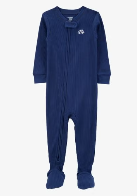 Baby Car Waffle Knit Footie 1-Piece Pajamas - Navy