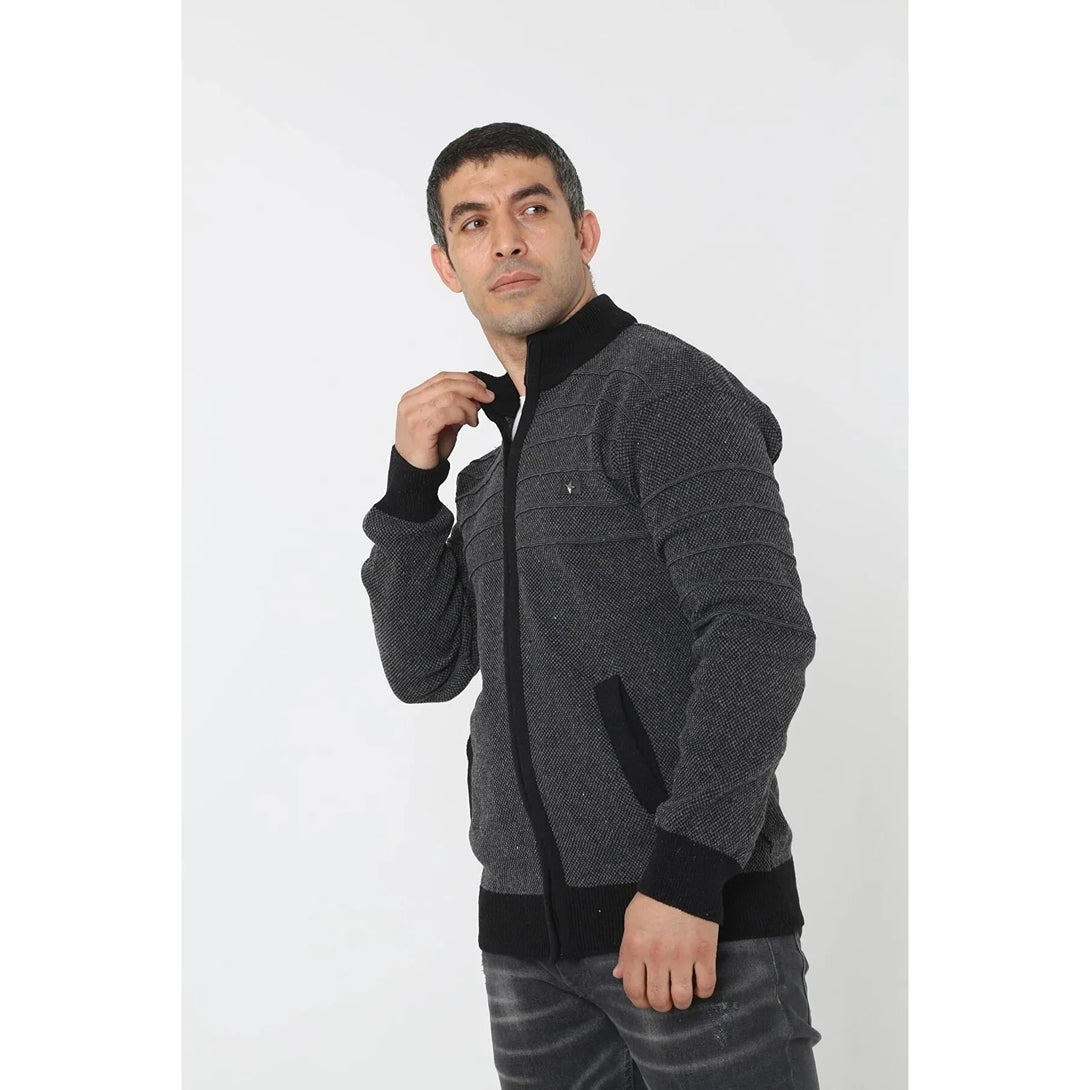 KMKkazan Baba Super Battal Knitwear Zippered Knitted Cardigan Sweater