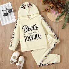 Pat Pat Kids 2pcs Letter Leopard Print Ear Design Hoodie & Pants Set , 11-12T +