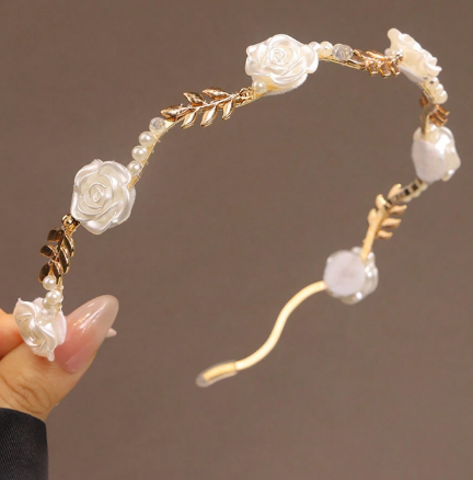 Shein 1pc Alloy Faux Pearl Hair Hoop,Rose Flower Pearl Hair Clip Fascinator +
