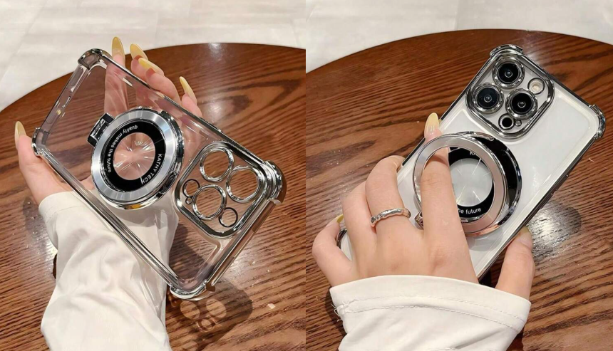 Shein 1pc Electroplated Four-Corner Raised Design Screen Protector + CD Texture Magnetic Hidden Stand Compatible With Wireless Charging +