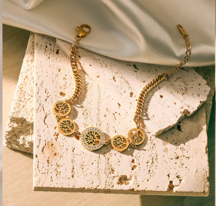Shein 1pc Fashionable Stainless Steel Tree Of Life Chain Bracelet +