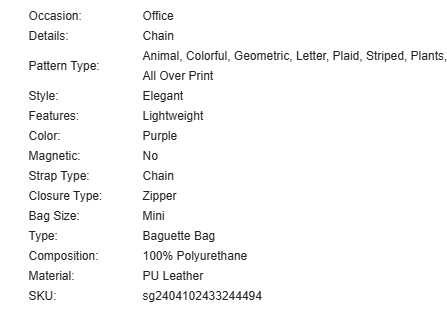 Shein 1pc Simple And Fashionable PU Fabric Bag +