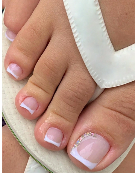 Shein 24pcs French Rhinestone Decor Short Square Fake Toe Nail +