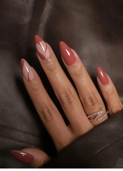 Shein 24pcs Medium Almond Press On Gradient Nails With Heart Design +