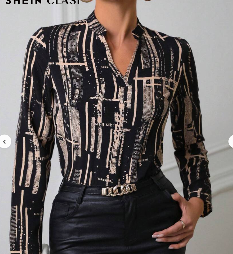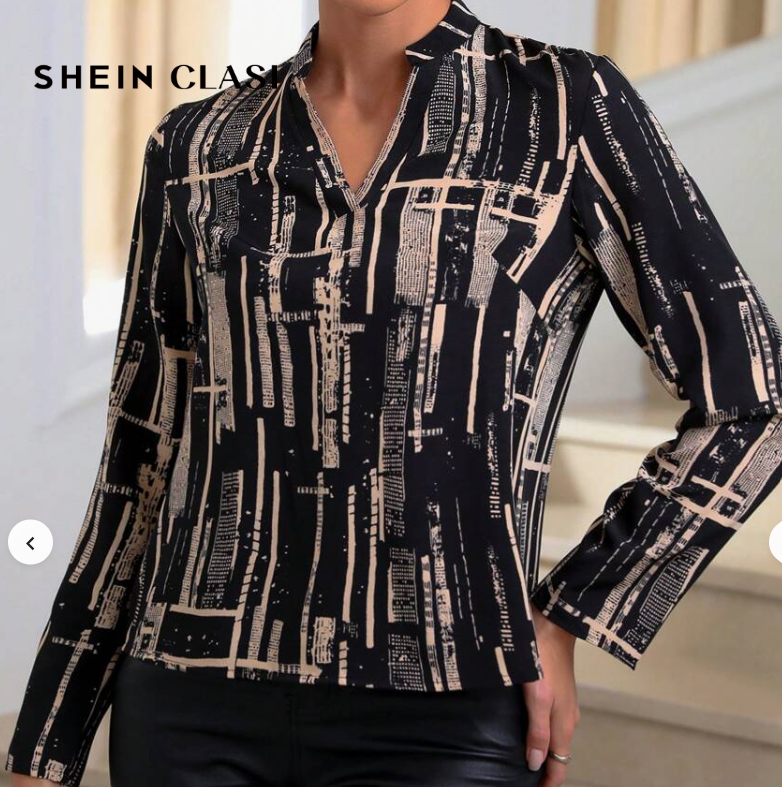 SHEIN Allover Print Notched Neckline Blouse,Long Sleeve Tops