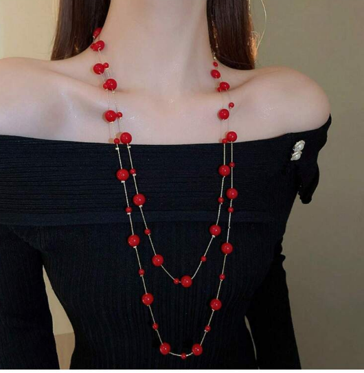 Andkiss 1pc French Luxurious Extra Long Faux Pearl Necklace, Suitable For Everyday Wear