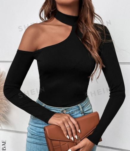 Shein Asymmetrical Neck Ribbed Knit Tee +