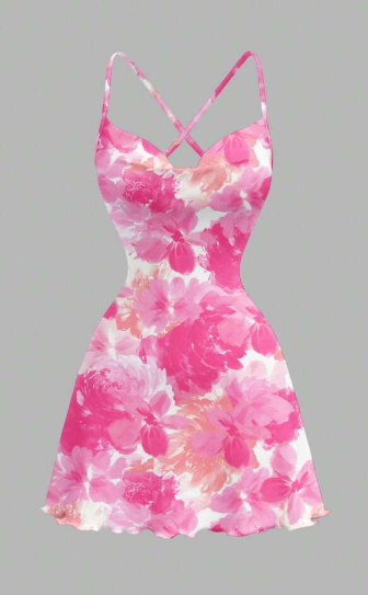 Shein Casual Minimalist All-Over Print V-Neck Sleeveless Short Dress, XL +