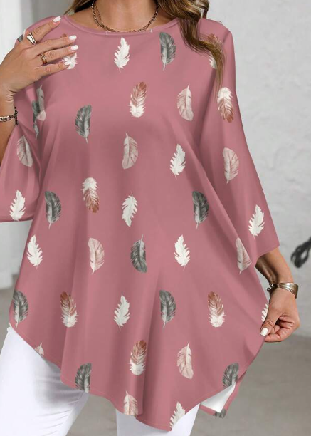 Shein Casual Minimalist Full Print Pink Feather Pattern Plus Size Shirt, 3XL +