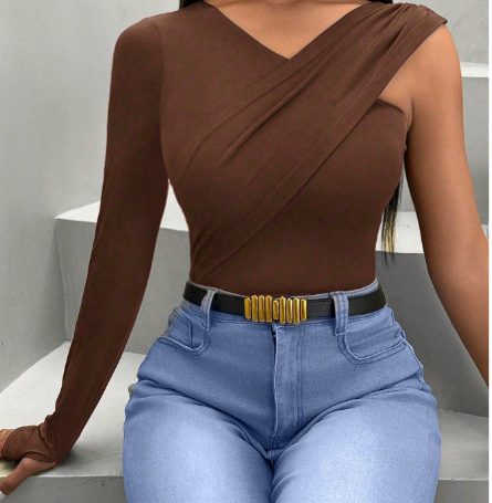 VaVaBold Casual Slim Fit T-Shirt With Asymmetric Collar For Spring