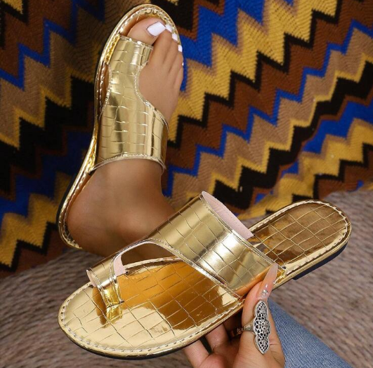 Versatile Roman Style Summer Sandals - 2024 New Women Casual Flat Slippers - Unique & Fashionable Women's Gold Round Toe Shoes, Elegant & Stylish, Sophisticated, Comfortable, Minimalist, Gorgeous, Graceful, Fresh, Romantic, Exquisite, Lightweight, Slip-On Casual Women Flat Sandals
