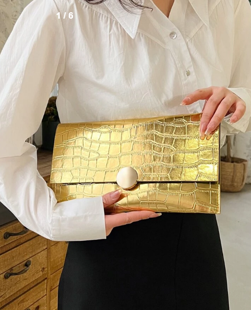 Crocodile Embossed Envelope Bag Flap Metallic PU Funky