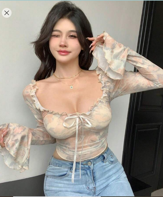 Shein All-Over Ditsy Floral Sheer Open Shoulder Long Sleeve Blouse, +