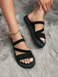 Shein Fashionable Open Toe Flat Slides, Size: 38 +