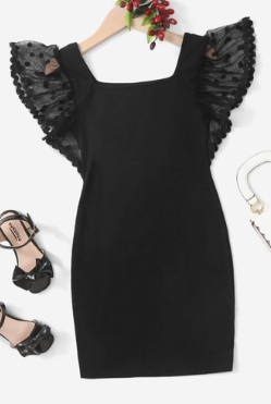 Shein Girls' Tulle Knit Robe with Papillon Manches, 11-12T +
