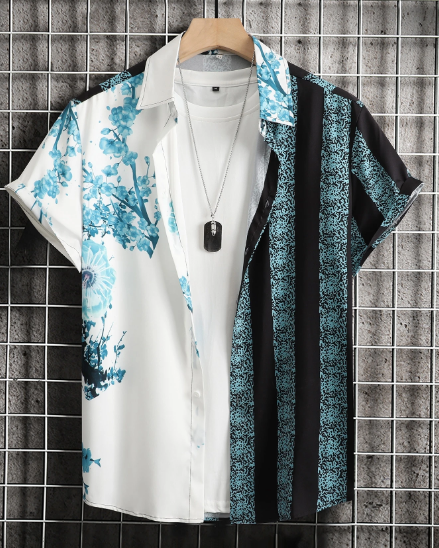 Shein Men Striped & Floral Print Shirt Without Tee, XXL +