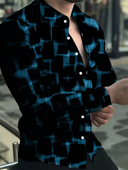 Shein Men Allover Printed Long Sleeve Shirt With Turn-Down Collar +