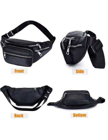 Unisex Waterproof & Wear-Resistant Pu Leather Black Fanny Pack With Multiple Pockets Fashionable Waist Bag Chest Bag, Preppy Bum Bag For The First Day Of School