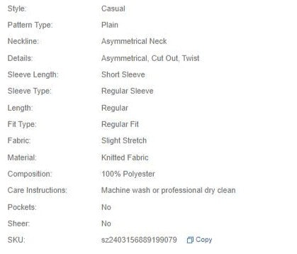 Shein Open Shoulder Solid Color Pleated Slim Fit Short Sleeve T-Shirt, L +