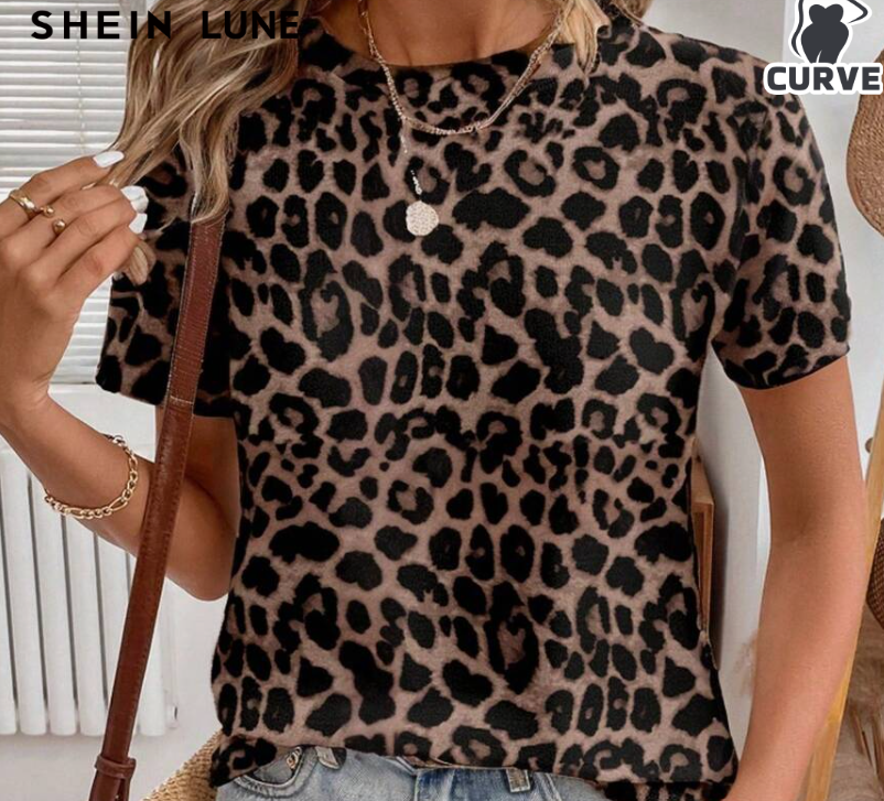 SHEIN Plus Size Casual Minimalist Allover Print Short Sleeve T-Shirt, Summer