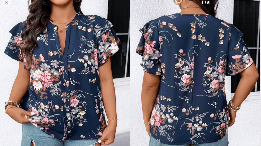 Shein Plus Size Floral Print Ruffle Trim Casual Holiday Shirt, 0XL +