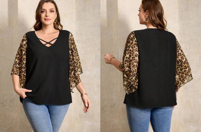 Shein Plus Size Leopard Print Patchwork Casual Vacation Shirt +