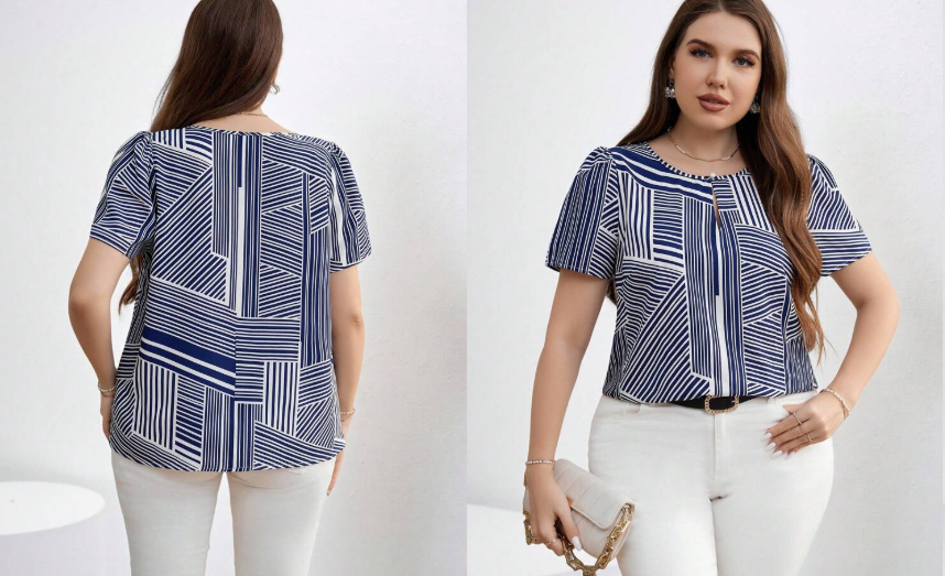 Chikora Plus Size Women Striped Woven Shirt For Summer,Business Casual Woman