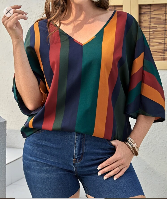 Shein Plus Striped Print Batwing Sleeve Blouse, 3XL +