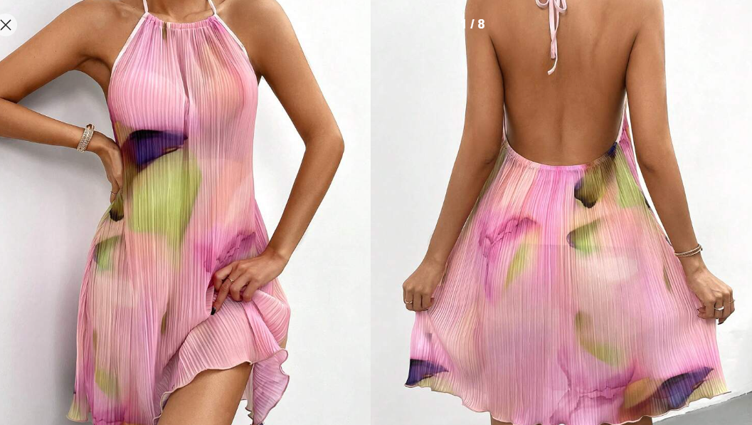 Shein Printed Halter Neck Backless Sexy Pleated Mini Dress, L +