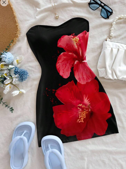 Shein Retro Floral Pattern Plus Size Midi Dress, 4XL +