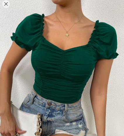 Shein Ruched Front Sweetheart Neck Puff Sleeve Crop Tee, S +