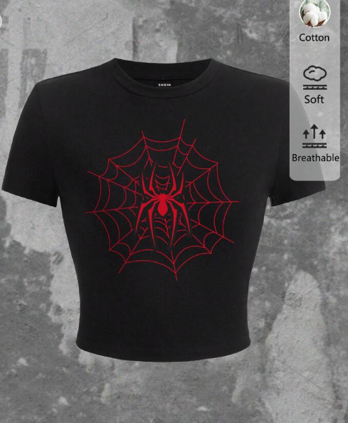 Shein Spider Print Round Neck Cropped Short Sleeve Slim Fit Women's T-Shirt, S +