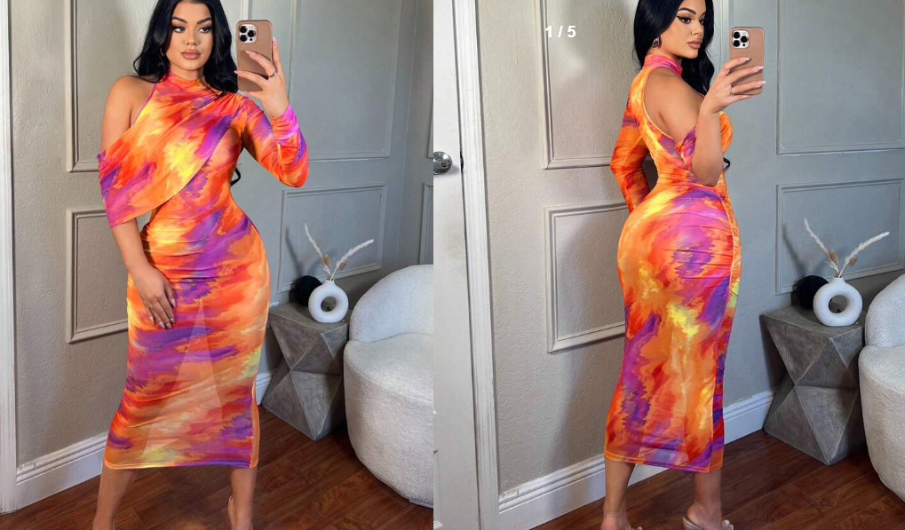 Shein SXY Tie-Dye Printed Ruched See-Through One-Shoulder Tight Mesh Dress, L +