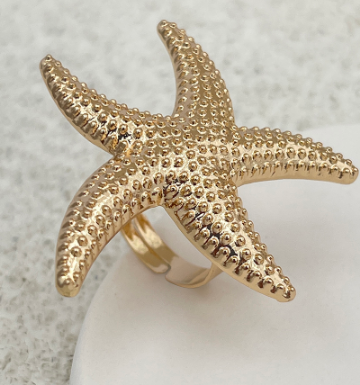 Shein Trendy Lady Starfish Hollow Flower Ring Fashion Jewelry +
