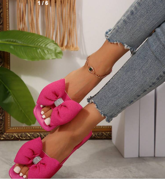 PEIYUMI Women's Bow Decor Slippers, Fashionable Flat Sandals For Summer