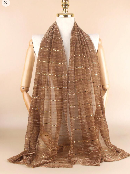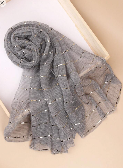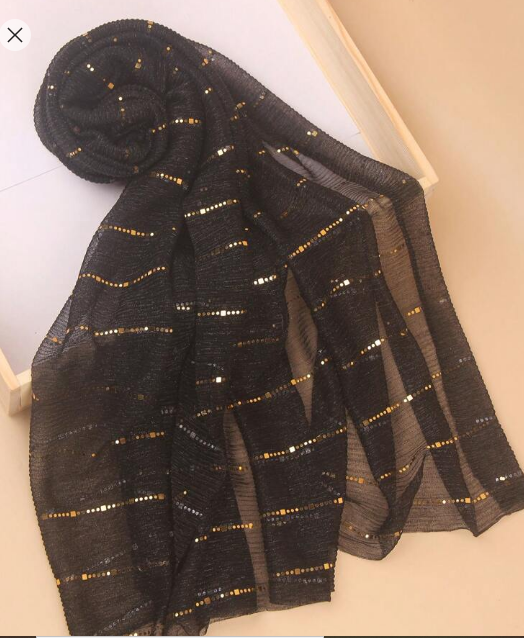 Shein Women's Sequin Lace Mesh Sparkle Luxury Hijab Scarf +