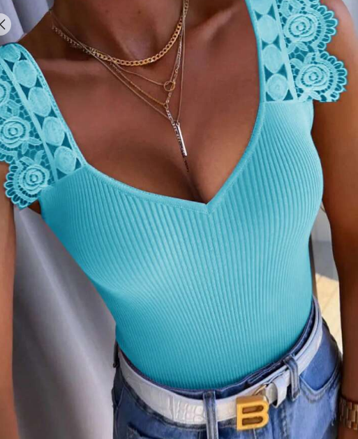 Shein Women's Solid Color Lace Trim Simple Casual Summer Tank Top, M +