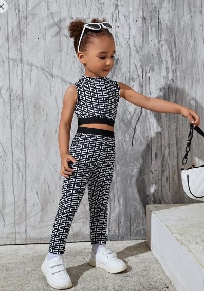 Shein Young Girl Number Print Mock Neck Tank Top & High Waist Pants, 5T +