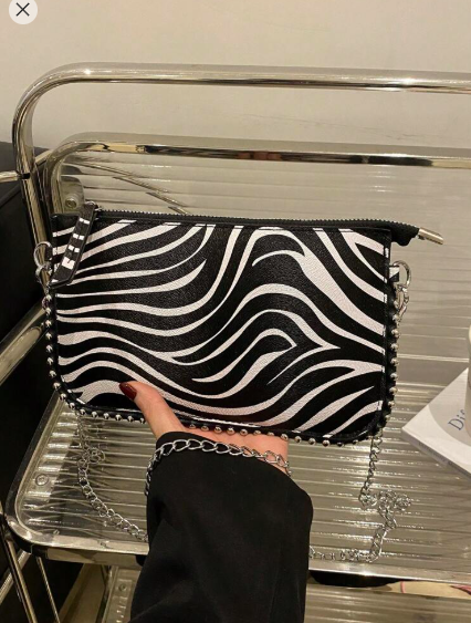 Zebra Print Shoulder Bag, Fashionable Ladies Charm Chic Beaded Crossbody Handbag