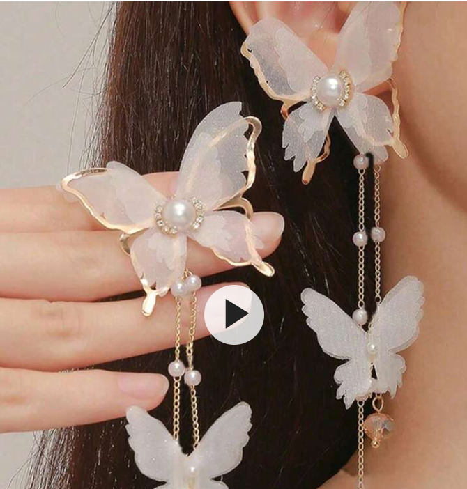 Shein 1Pair Of Super Fairy White Butterfly Tassel Earrings +