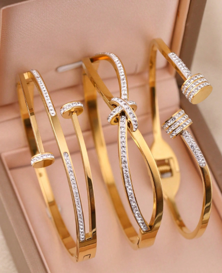 Shein 3pcs/1pc Elegant Luxury Stainless Steel Women Gold Zirconia Bracelet +