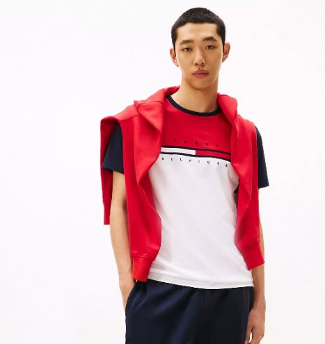 Tommy Colorblock Flag Stripe Logo T-Shirt, L +