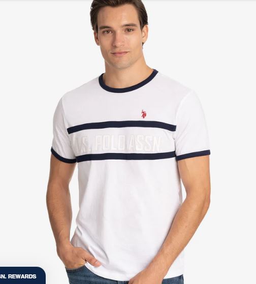 U.S. Polo Crew Neck Ringer Logo T-shirt, S +