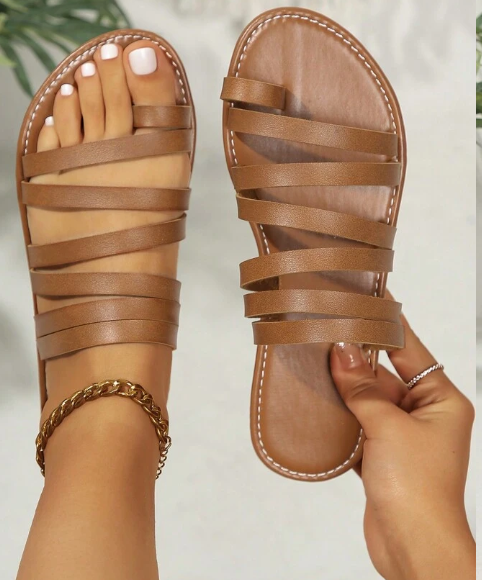 Shein Women's Flat Slip-On Slides, Toe-Ring Woven Strap Sandals, Casual Beach Sandals